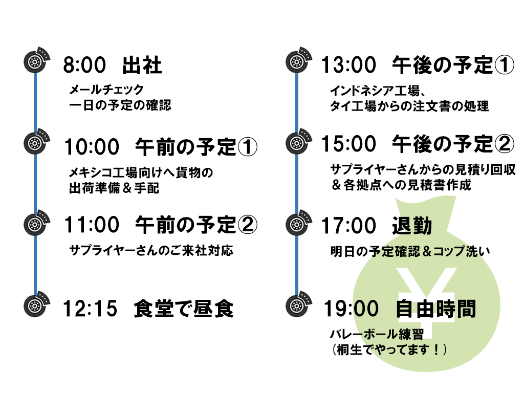 拠点の担当者から困りごとの相談を受け、それを解決できたときに大きなやりがいを感じます。最近では、インドネシアに出向している先輩社員から「使用している工具が壊れやすく困っているので、日本製を購入したい」と依頼がありました。そこで複数の取引商社に相談し、短納期で対応できる商社を選定。通常であれば納品まで約3か月かかるところ、約2週間で現地に届けることができました。後日、先輩社員から「現地の作業員も喜んで使っています!」と連絡をいただいたときは、とても嬉しく、この仕事をしていてよかったと強く感じました。