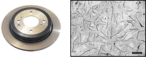 Material for suppressing deformation by increasing thermal conductivity, depositing a large amount of one-sided graphite in a base. Material for reducing brake squeak by utilizing high extinction capacity.